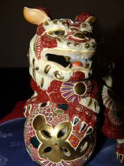 Souvenier aus dem Urlaub in Japan (teurer Urlaub)500.--$ hätte ich hier für 300 kaufen können na ja war eben Urlaub!!!!!!!!!!! Japanischer Drachen vergoldet am Boden ist ein Siegel kann es leider nicht erkennen habe es so gut wie es geht fotografiert.